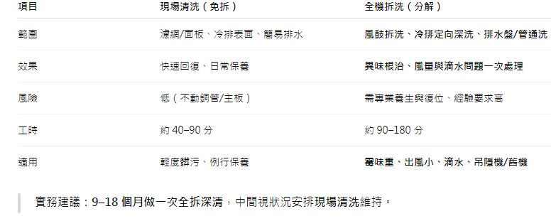 現場清洗 vs 全機拆洗(怎麼選?)
